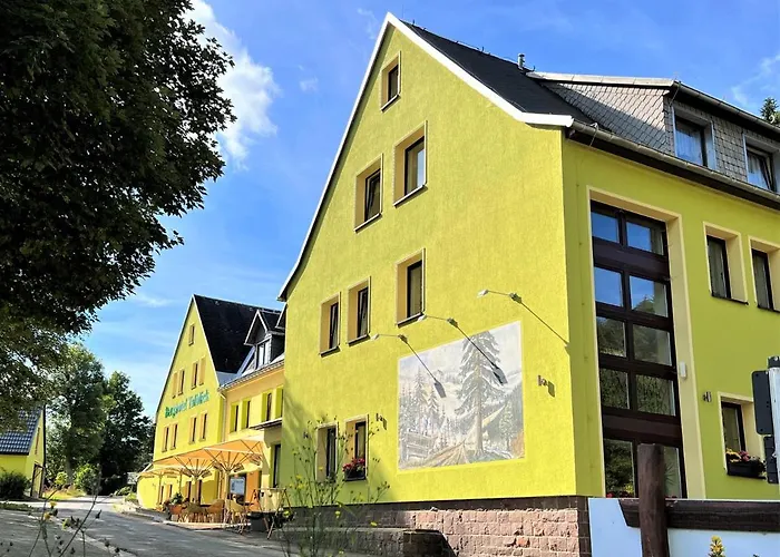 The 4-star smoke-free Berghotel Talblick Holzhau hotel is located about a 10-minute ride from Burgruine Rechenberg, offering 26 rooms along with a sauna, a sundeck, and a shared lounge. Located 80 km from Klotzsche airport, this Holzhau hotel features shuttle service and bicycle rentals for guests to take advantage of.